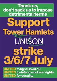 TO ADD YOUR NAME, COMPLETE THE GOOGLE FORM HERE. On 3, 6 and 7 July, thousands of Tower Hamlets council workers are striking to stop the council’s “Tower Rewards” plan to sack its entire workforce and re-employ them on worse terms and conditions. This attack on the workers is bad enough. But on 3 JulyContinue reading “Sign the solidarity statement: no to strike-breaking in Tower Hamlets!”